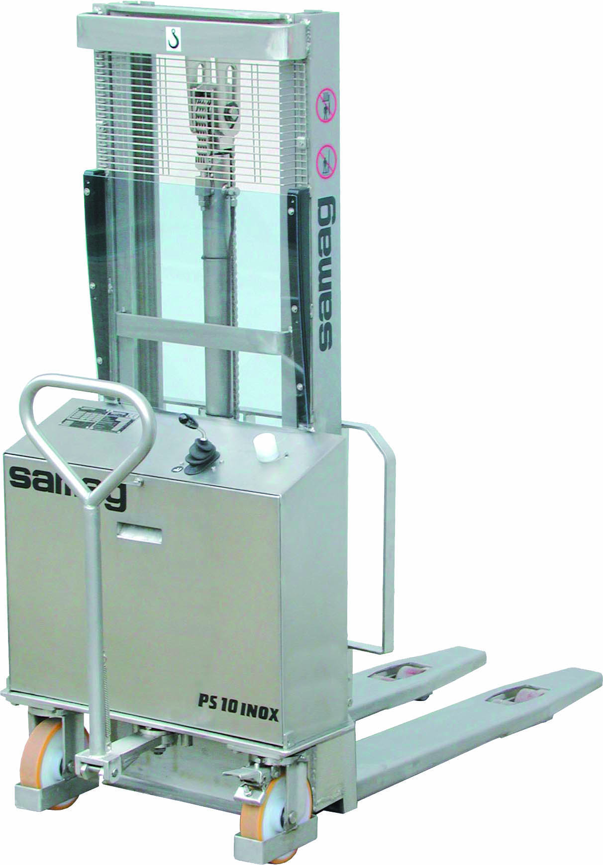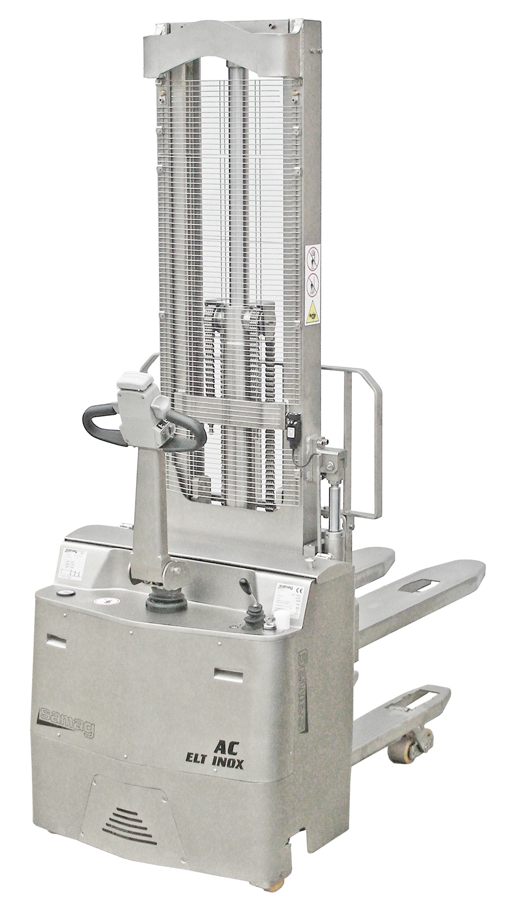 ELFO INOX Carrello Elevatore con operatore seduto in acciaio inox per lavorare in corridoi compatti e movimentare pallets fino a 4800 mm.
