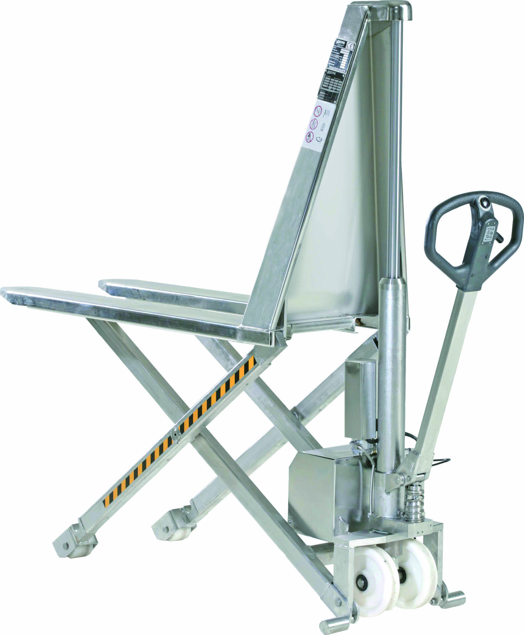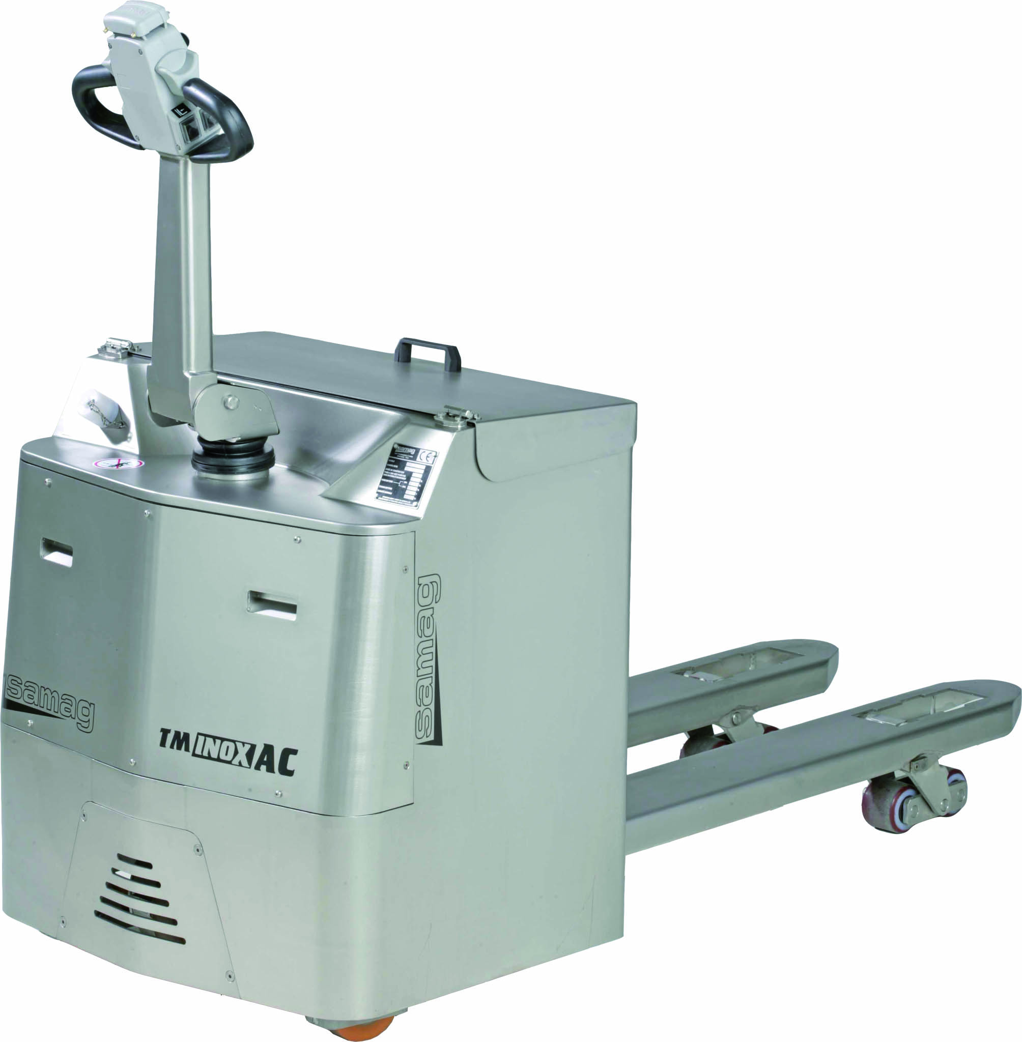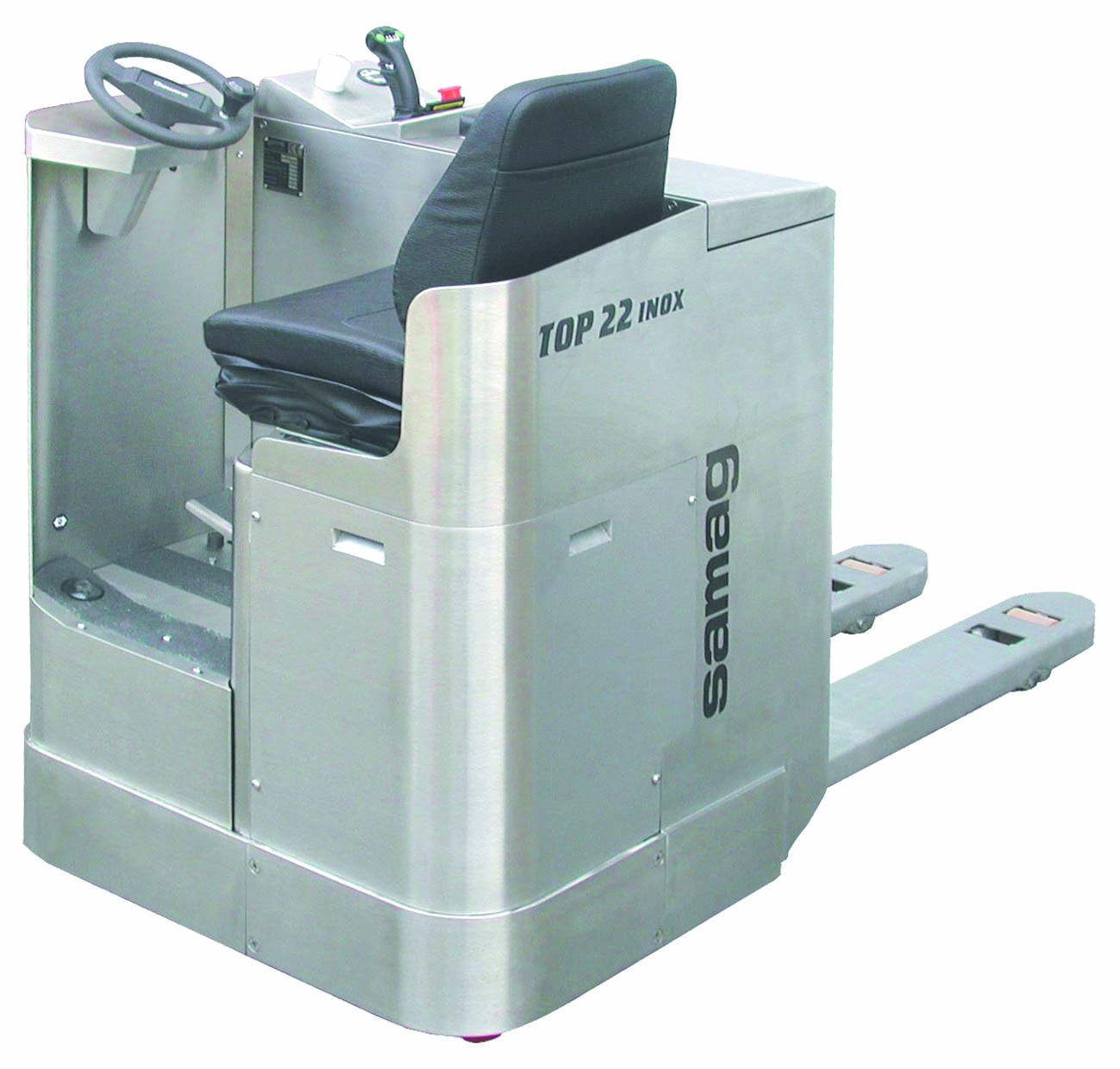 carga sobre rueda motriz central amortiguada fácilmente regulable a través de los anillos para una adherencia al suelo cada vez más eficiente – equipamiento de serie: contador de las horas con estado de carga batería y búsqueda de las averías – cajón y cubierta batería en acero inox.